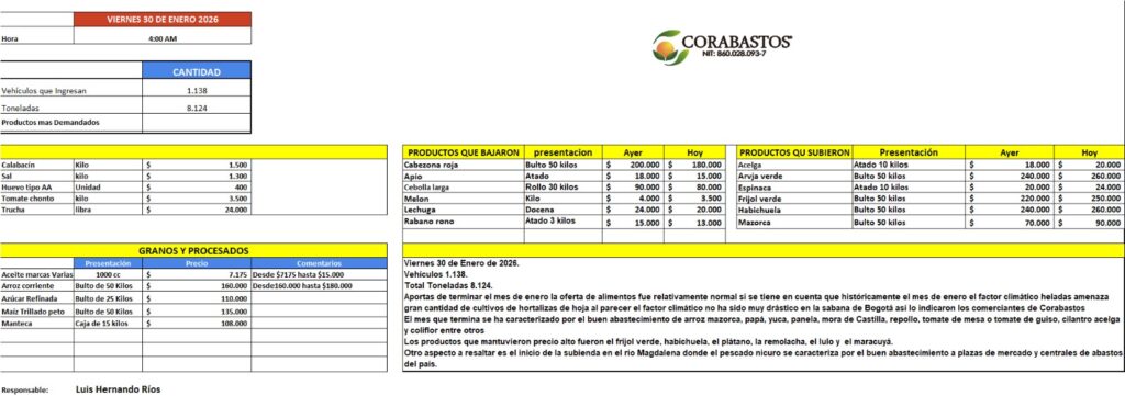 NOVEDADES DE LA CANASTA FAMILIAR CON TENDENCIA A SUBIR O BAJAR DE PRECIO ,INFORMA PEDRO TRIVIÑO DESDE LA CENTRAL DE CORABASTOS EN BOGOTA